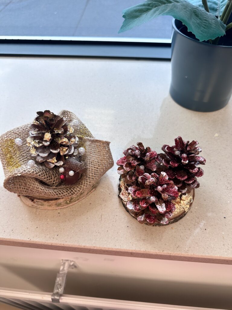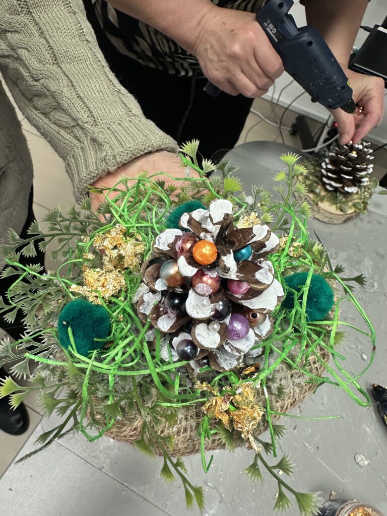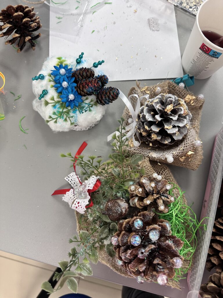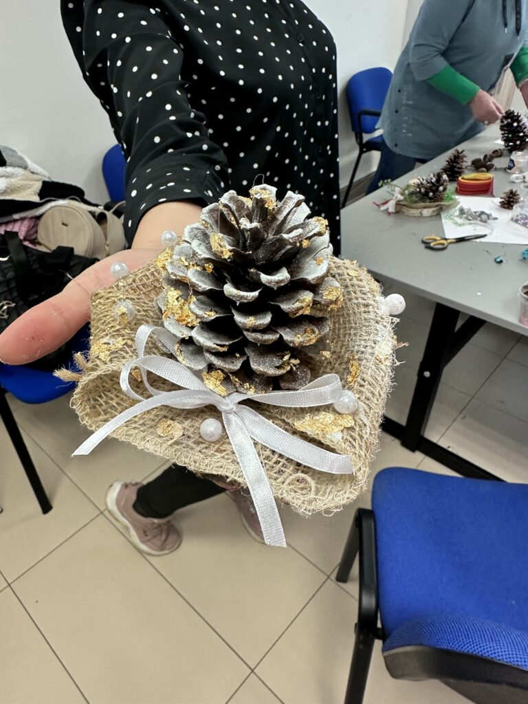 W ramach projektu „Droga do samodzielności III”, współfinansowanego ze środków PFRON, zorganizowaliśmy wyjątkowe warsztaty kreatywne, podczas których nasi beneficjenci tworzyli świąteczne dekoracje z szyszek. To doskonała forma aktywności społecznej, która łączy rozwój, integrację i dobrą zabawę.