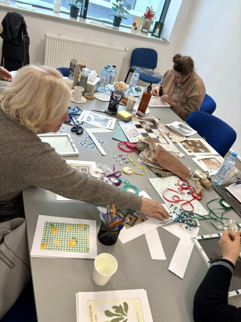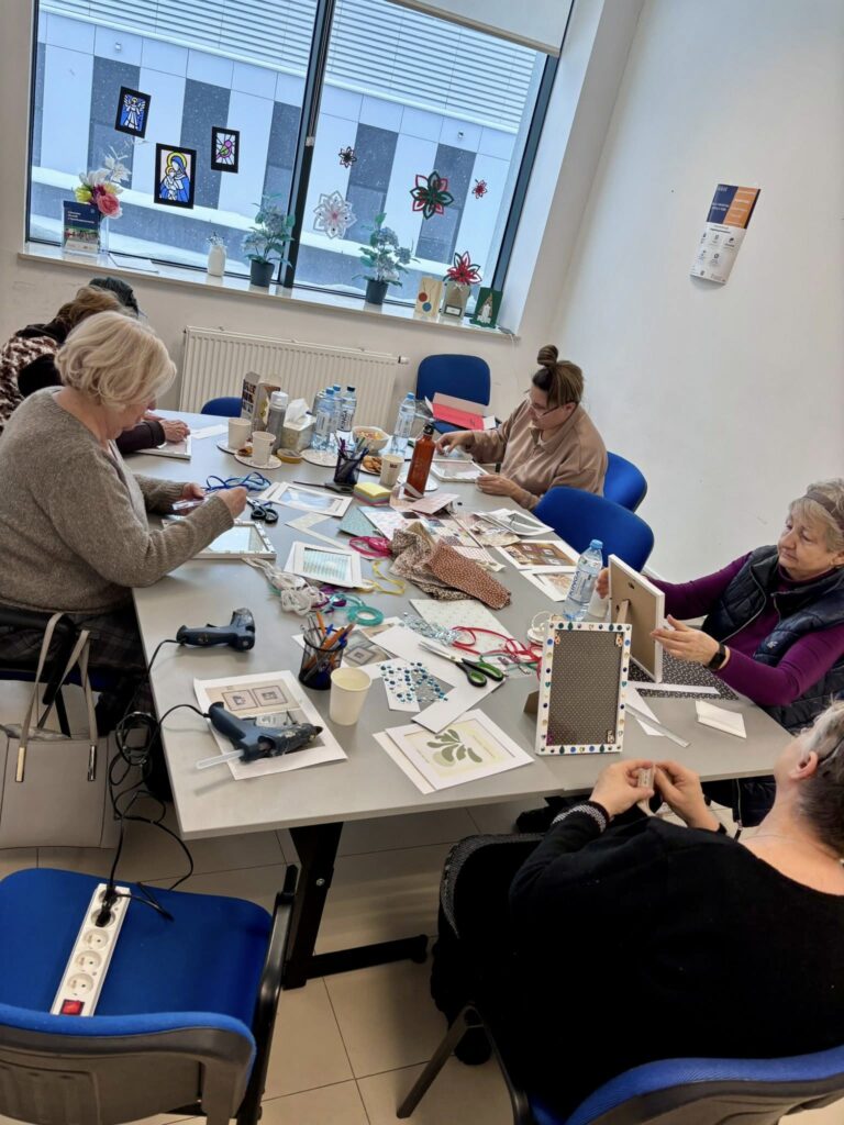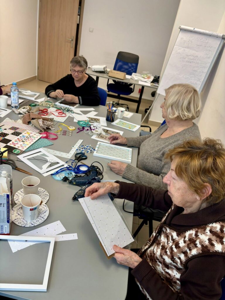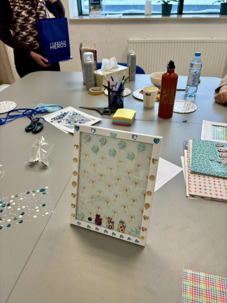 Ramki na zdjęcia to ważny element naszych domów — to właśnie w nich najczęściej umieszczamy fotografie najbliższych nam osób i wyjątkowe wspomnienia. Dzisiejsze warsztaty były nie tylko okazją do rozwijania zdolności artystycznych, ale także do rozmów, poznania nowych osób i spędzenia czasu w ciepłej, życzliwej atmosferze. Integracja, wzajemna motywacja i radość ze wspólnego działania sprawiły, że nawet taka zimowa pogoda nie była przeszkodą, by wyjść z domu i zrobić coś dla siebie ![]()