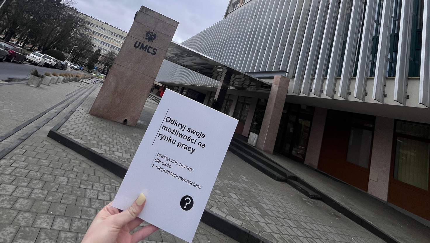 Bezpłatny poradnik 📘 „Odkryj swoje możliwości: praktyczne porady na rynku pracy dla osób z niepełnosprawnościami” jest już dostępny w Biurze ds. Osób z Niepełnosprawnościami i Wsparcia Psychologicznego na Uniwersytet Marii Curie-Skłodowskiej w Lublinie (UMCS).